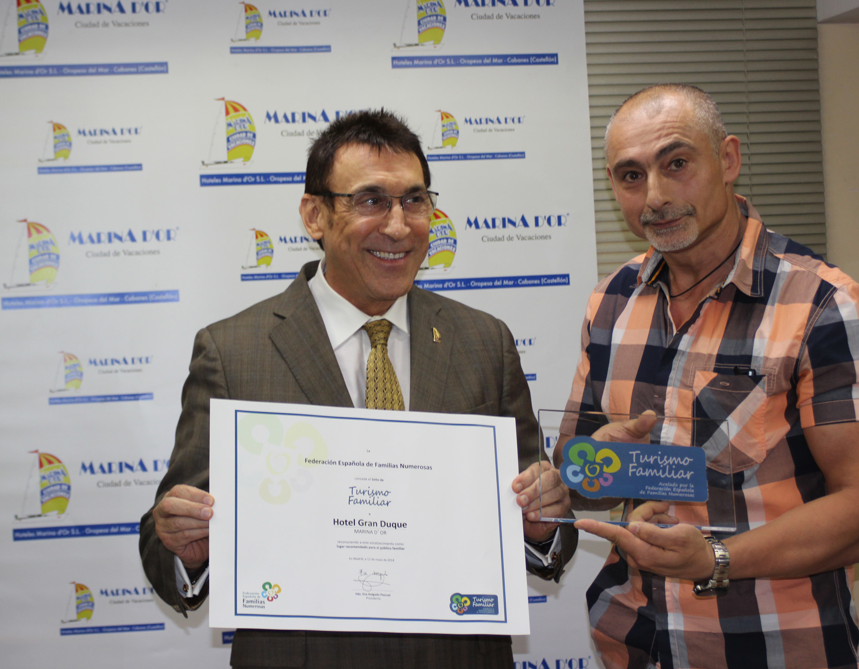 El Hotel Gran Duque, en Oropesa del Mar (Castellón), ha recibido de la mano del Vicepresidente de FANUCOVA, Juan Manuel Ramos el Sello de Turismo Familiar por ser uno de los establecimientos especialmente adaptados a las necesidades de las familias numerosas.
