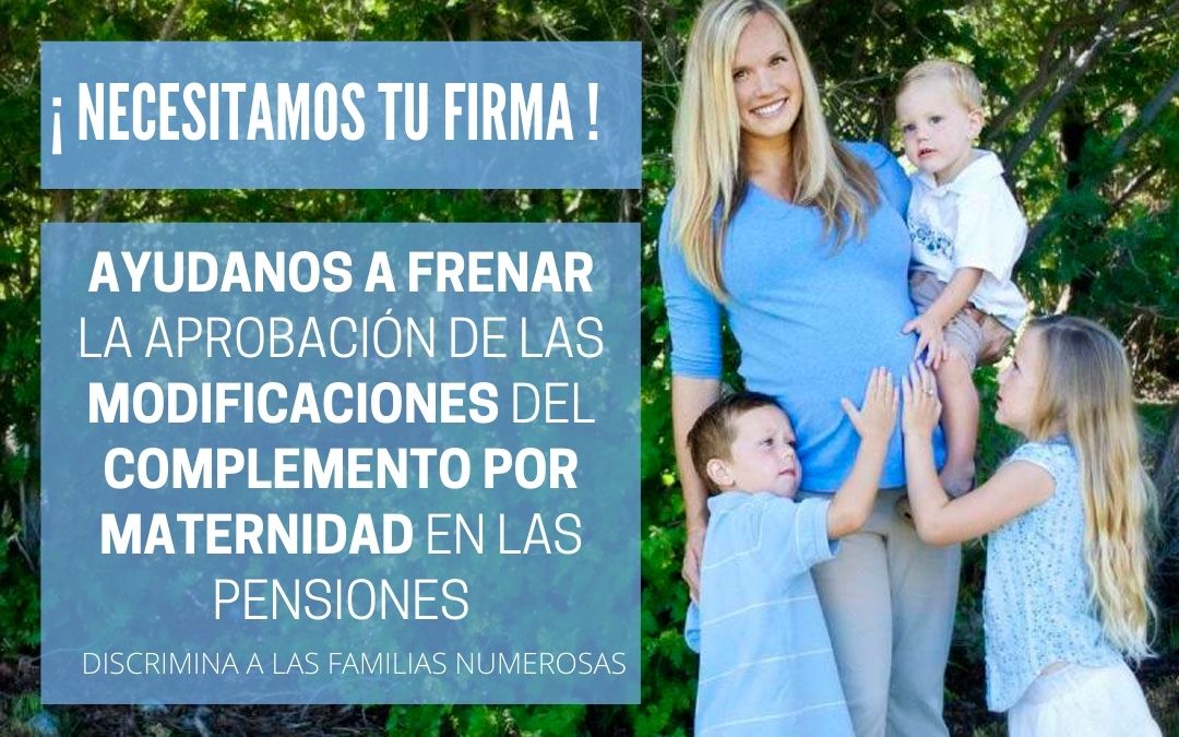 La FEFN, que representa y defiende los derechos de las 700.000 familias numerosas que hay en España, considera que no se puede pasar por alto esta injusticia y está recabando apoyos para tumbar la medida. Por eso, ha organizado una concentración mañana ante el Congreso (14:30 horas) y ha abierto una campaña de recogida de firmas en Change.org para que todas las personas afectadas puedan dejar claro su rechazo a este planteamiento, con el que no se sienten compensadas: ni creen que sea una forma justa de eliminar la brecha de género ni que se compense adecuadamente la aportación que han hecho a la sociedad en forma de capital humano, a través de sus hijos, que son los que precisamente van a sostener las pensiones.
