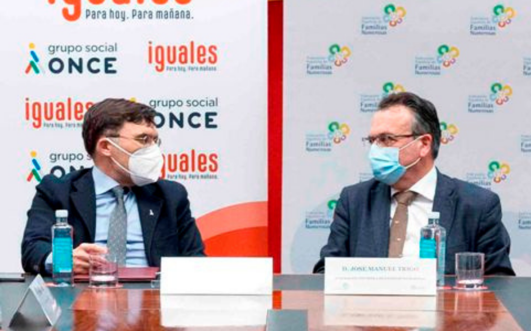 Fundación ONCE y la Federación Española de Familias Numerosas (FEFN) han firmado un convenio de colaboración para mejorar la formación y el acceso al empleo de las personas con discapacidad y, con ello, su inclusión social.